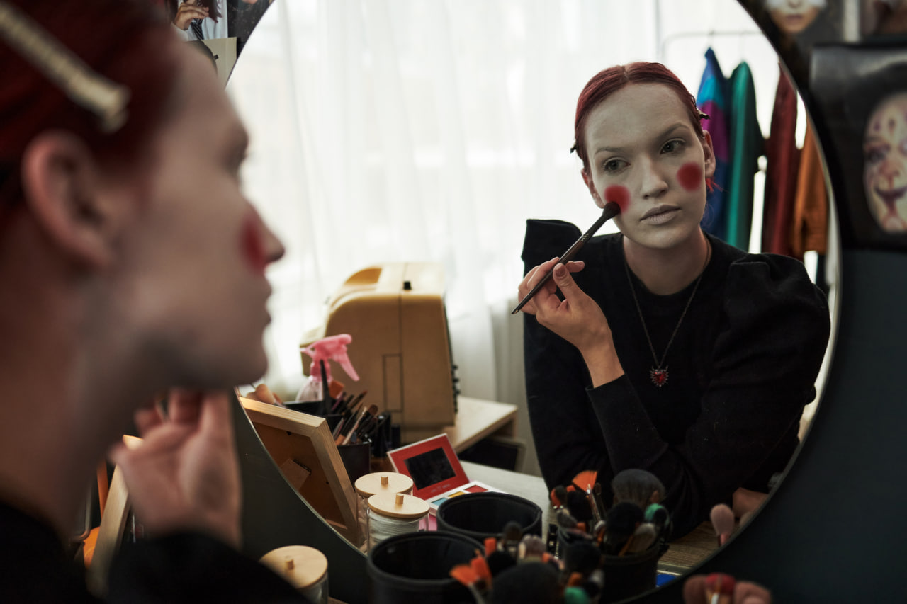 Applying stage makeup requires skill and precision. Layering colors and textures enhances realism and ensures features are visible from all audience angles. Foundation, contouring, highlights, and shadows work together to define facial structure, enhance expressions, and support character identity. For complex designs, applying prosthetics or special effects elements in stages allows for proper blending and secure adhesion, producing a seamless and professional finish.